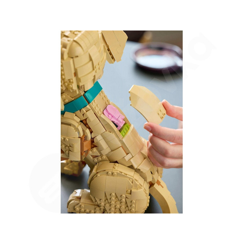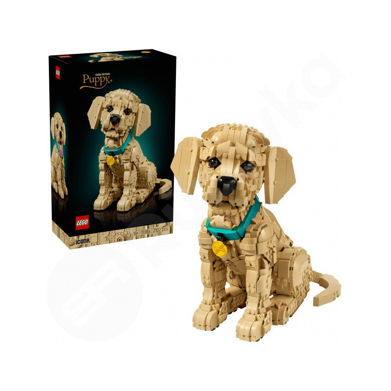 LEGO® Icons 11384 Štěně zlatého retrívra je okouzlující model určený pro dospělé milovníky psů, kteří hledají klidný a tvořivý projekt. Díky pohyblivé hlavě, uším a ocasu snadno vytvoříte roztomilé pózy, a odnímatelný růžový jazyk dodá výrazům hravost. Barevný obojek s medailonkem zvýrazní výslednou dekoraci, která se skvěle hodí do obýváku i kanceláře. S 2102 dílky nabízí LEGO® stavebnice příjemnou výzvu a výsledný model měří přibližně 30 cm na výšku, takže zaujme na první pohled.