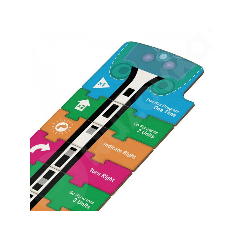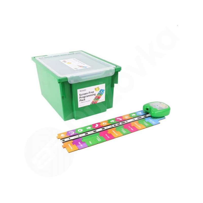 Sada obsahuje 11 sad 53 instrukčních bloků, 11 programovacích desek a 11 pracovních sešitů pro žáky. Žáci umisťují bloky na desku, stisknou tlačítko pro nahrání sekvence a robot vykoná příkazy. Tento přístup podporuje rozvoj logického myšlení, schopnost plánovat a testovat instrukce, spolupracovat ve skupině a kreativně řešit problémy, aniž by bylo potřeba počítačové rozhraní.