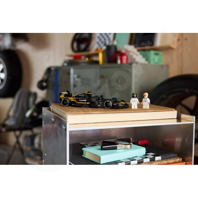 Ano, stavebnice využívá standardní systém LEGO®, takže je plně kompatibilní s ostatními sety Speed Champions i běžnými kostkami. Minifigurky lze vybavit standardními doplňky a vůz snadno zakomponujete do vlastní garáže, boxové uličky nebo závodní scény z jiných setů. Můžete tak rozšiřovat sbírku a stavět větší okruhy i depo.