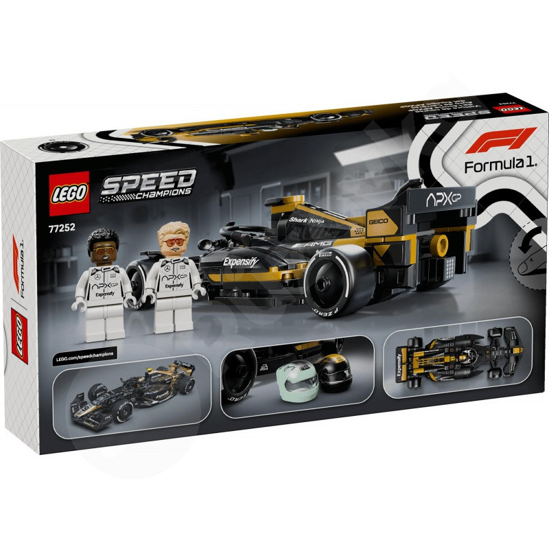 LEGO® Speed Champions 77252 Závodní auto týmu APXGP z filmu F1® přináší do vaší sbírky elegantní černozlatý monopost inspirovaný filmovou předlohou. S detailními prvky karoserie, širšími zadními pneumatikami s nápisem Pirelli a autentickými samolepkami sponzorů si užijete stavění i vystavení. Nechybí ani dvě minifigurky jezdců pro hraní závodních scén. Tato LEGO® stavebnice potěší děti od 10 let i nadšené sběratele, kteří milují rychlost, techniku a filmovou atmosféru.