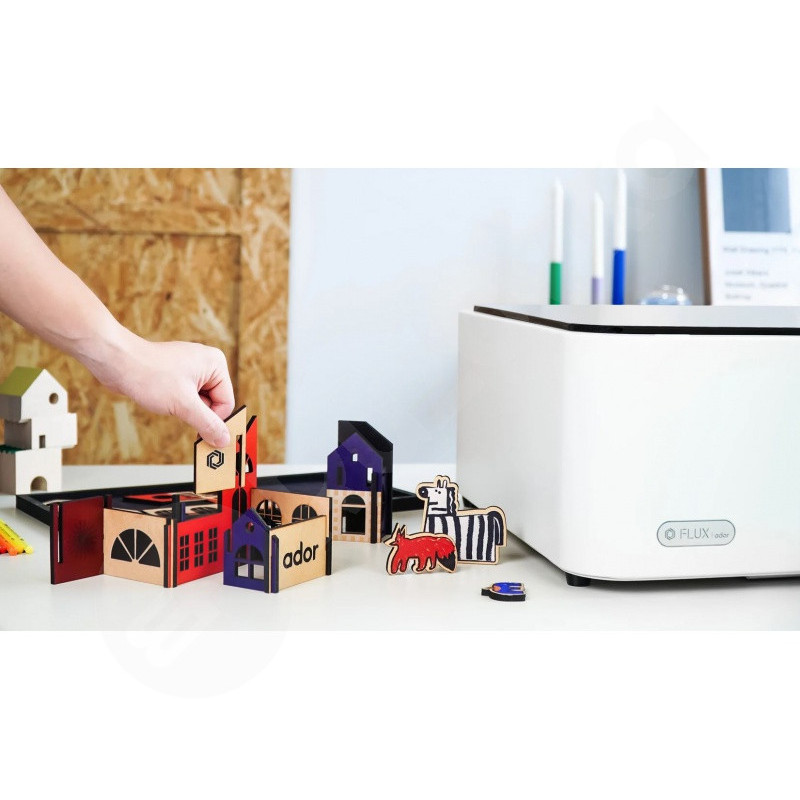 FLUX Ador, prvý farebný laserový stroj na rezanie a gravírovanie na svete, je vylepšený tromi kvalitnými, vymeniteľnými modulmi, ktoré vám umožňujú gravírovať a rezať širokú škálu materiálov a zároveň pridávať žiarivé farby vašim umeleckým projektom. Používateľsky prívetivé rozhranie Adore očarí profesionálov aj začínajúcich umelcov, ktorí sa ešte len pozerajú po umeleckom svete. Ponorte sa do oceánu nekonečných možností laserového craftingu s Ador.