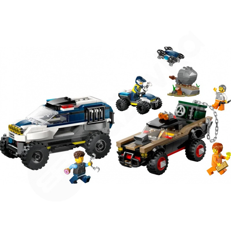 LEGO® stavebnice sú známe svojou schopnosťou inšpirovať k tvorivej hre a LEGO® City 60449 Off-Road Police Car Chase túto povesť plne potvrdzuje. Táto dynamická stavebnica je určená pre deti od 6 rokov a ponúka všetko, čo potrebujete na napínavú policajnú naháňačku v mestskej divočine. Deti si postavia policajné SUV s robustnými kolesami, kriminálny pick-up, štvorkolku a dron a nechýba ani veľkolepý valivý balvan. LEGO® takéto súpravy podporujú rozvoj predstavivosti a strategického myslenia, pretože deti sa stávajú režisérmi vlastných príbehov, ktoré môžu byť zakaždým iné. Stavebnica LEGO® City 60449 Off-Road Police Car Chase je ideálnou voľbou pre malých fanúšikov akčných scén a rýchlych hitov.