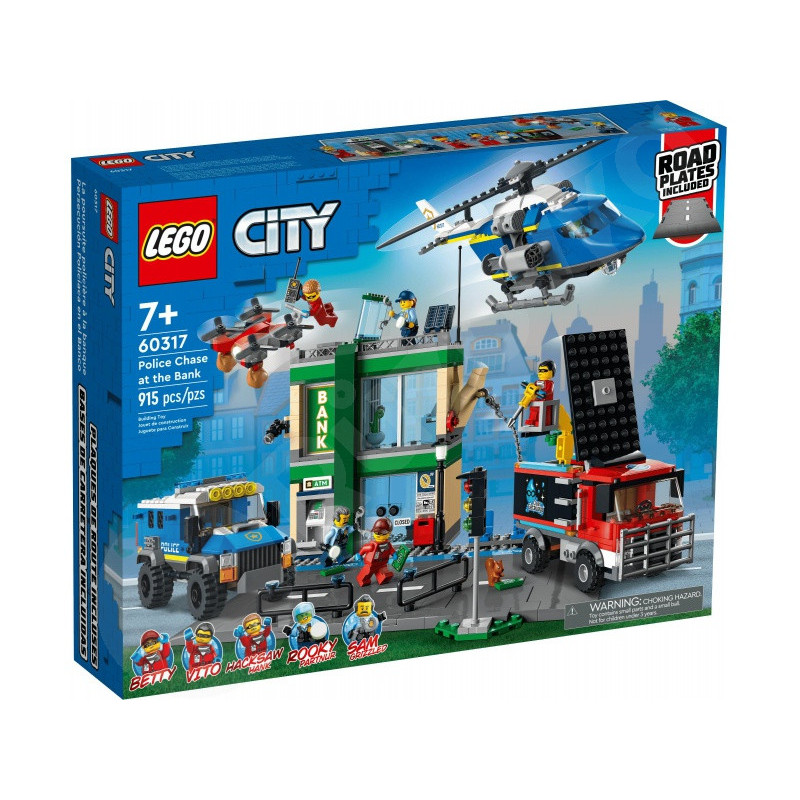 Vstúpte do rušného mesta, kde každá minúta počíta a predstavivosť letí plnou rýchlosťou. LEGO® Mesto 60317 Policajná naháňačka v banke zahŕňa detailnú banku, šikovné lúpežné auto, odolnú policajnú dodávku a vrtuľník s vystreľovačom sietí. Deti od 7 rokov budú ponorené do vzrušujúcich scén s minifigúrkami, šikovnými prvkami a spojiteľnou doskou na ceste. Toto LEGO® Stavebnica stavia na mechanickej zábave bez batérií a ponúka aj digitálne 3D návody na pohodlné stavanie.