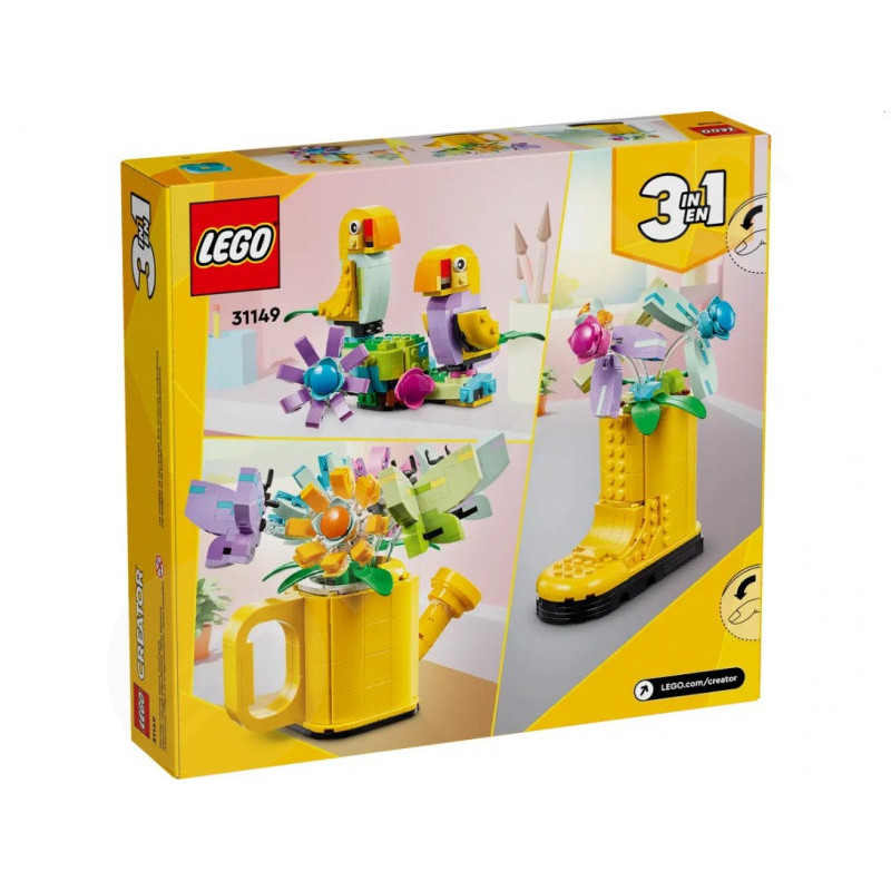 LEGO® LEGO® Creator 31149 Kvety v kanvici dávajú deťom a dospelým príležitosť vytvoriť krásnu prírodnú dekoráciu, ktorá rozžiari každý priestor. V tejto kreatívnej súprave si môžete postaviť tri rôzne modely – pestrofarebnú kanvicu s kvetmi a motýľmi, žltú čižmu plnú kvetov alebo pár roztomilých vtáčikov na bidielku. Každý model je detailný a vybavený pohyblivými časťami, ktoré vám umožňujú prispôsobiť si jeho vzhľad podľa vašich predstáv. LEGO® LEGO® Creator 31149 Kvety v kanvici sú dokonalým darčekom pre každého, kto miluje kreatívne stavanie a prírodné motívy.
