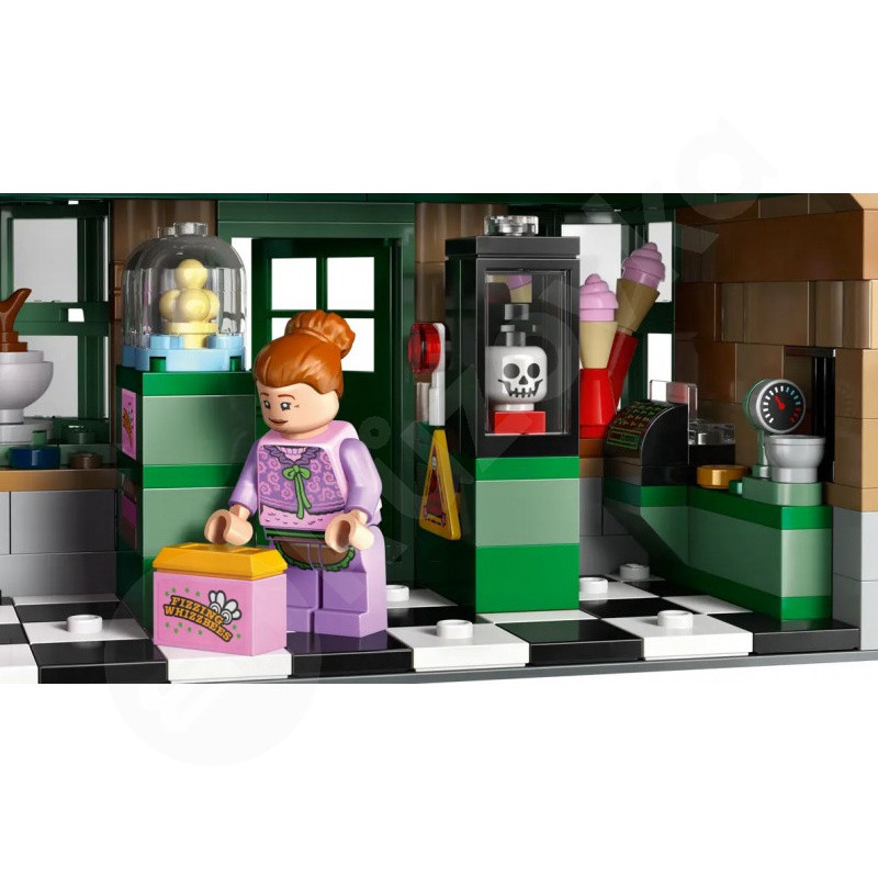 LEGO® Harry Potter™ 76457 Zberateľská edícia dediny v prasinkách prináša jedinečný pohľad na legendárnu čarodejnícku osadu, ako ju fanúšikovia poznajú z filmov. Nájdete tu Medový raj, sovu poštu, krčmu Tri metly, obchod s džinom vo fľaši, pisárske brka všetkého druhu a po prvýkrát v histórii LEGO modely Pytlíkových vtipov a krčmu Prasacia hlava. Každá zo 7 budov je bohato vybavená interiérmi a zimnými detailmi, ktoré dopĺňa zasnežená krajina. Modulárna konštrukcia umožňuje voľné umiestnenie budov a vytvorenie vlastnej verzie zasneženej ulice v Prasinkách.