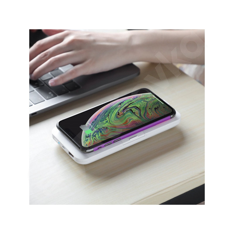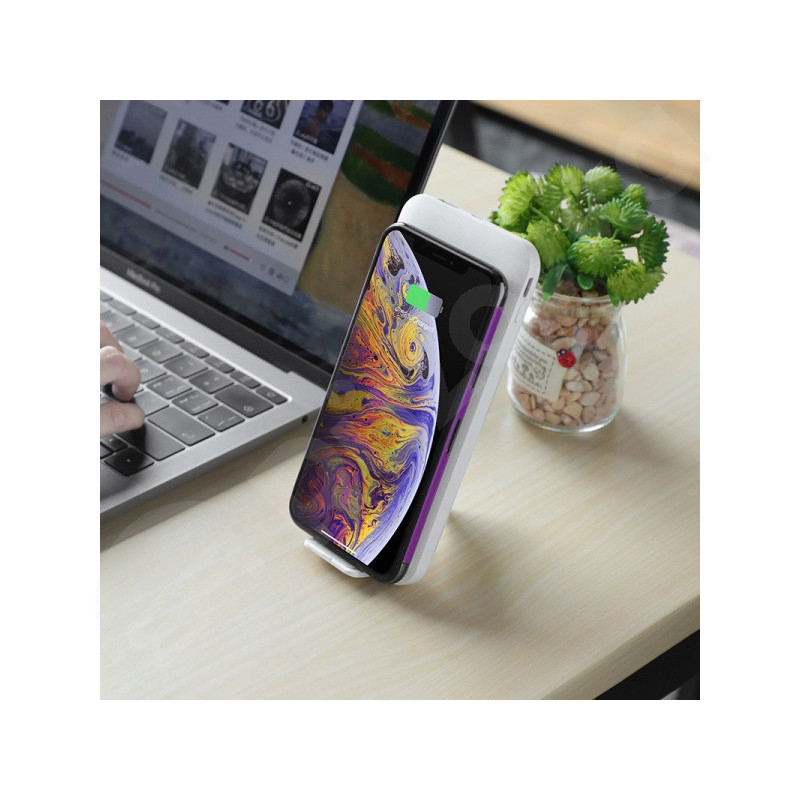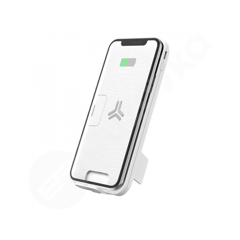 Zariadenie je vybavené LED indikátorom, ktorý zobrazuje hladinu energie a aktivuje sa tlačidlom. Okrem toho disponuje funkciou bezdrôtového nabíjania a držiakom na mobil.