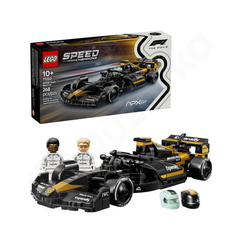LEGO® Speed Champions 77252 Pretekárske auto APXGP z filmu F1® prináša do vašej zbierky elegantné čierno-zlaté auto inšpirované filmom. S detailnými detailmi karosérie, širšími zadnými pneumatikami s nápisom Pirelli a autentickými nálepkami sponzorov si budete užívať stavbu a vystavenie. Sú tu aj dve minifigúrky jazdcov pre RPG pretekárske scény. Toto LEGO® Stavebnica poteší deti od 10 rokov a nadšených zberateľov, ktorí milujú rýchlosť, technológie a filmovú atmosféru.